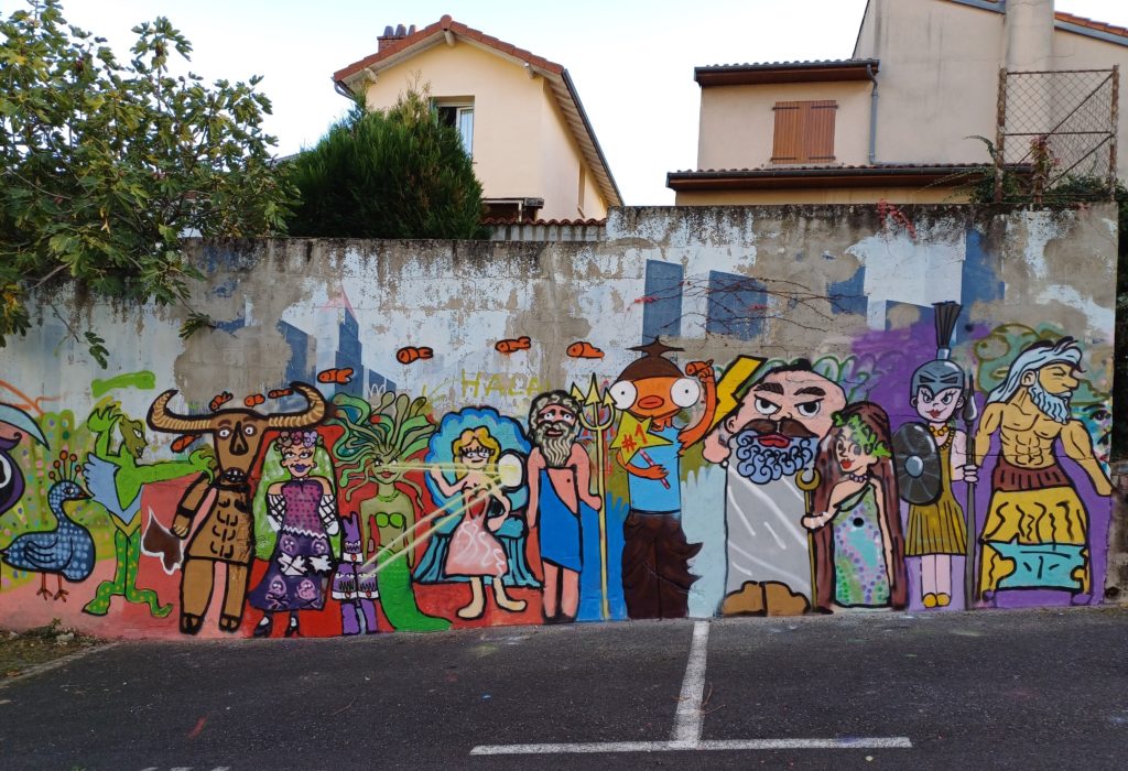 Au cours des dernières vacances scolaires, les enfants et adolescents de la résidence Goncourt à Clermont-Ferrand ont ainsi réaliséune fresque murale collective contribuant à l’embellissement de leur environnement.